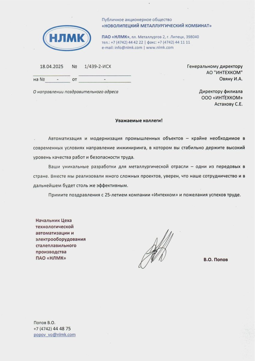 НЛМК к 25-летию «Интехкома»Последние новости