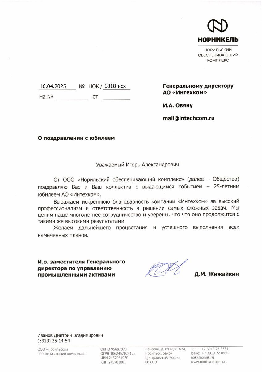 Норильский обеспечивающий комплекс «Норникеля» к 25-летию «Интехкома»Последние новости