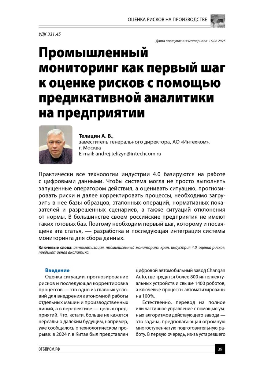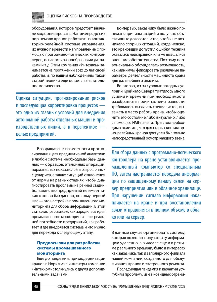 В журнале «Охрана труда и техника безопасности на промышленных предприятиях» (№7/2025) вышла статья Андрея Телицина, заместителя гендиректора «Интехкома».